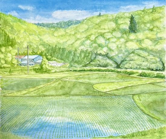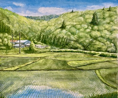 初春の田んぼ風景を描いているがなかなか完成まで行かず悩んでいた。混色が思ったように出来ない、樹木の表現が思うように表現が出来ない、全体として力強さがないなど感じるが、自分なりに修正をすると画面が汚くなってしまいそうだ。