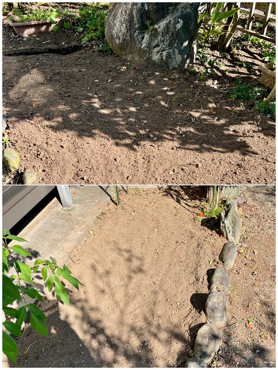 庭の野菜用区画の整備 家庭菜園 2025.10.24 庭の一角にある猫の額ほどの野菜区画の整備が終わった。今年の5月に野菜の苗(茄子、キュウリ、オクラ、ミニトマト、オオバ、モロヘイヤ)を買って植えて育てた。私は買ってきただけで家内が植え育て収穫してくれたので新鮮な野菜を食べることが出来た。家内には感謝している。 冬野菜の苗の植え込みのためにも枯れた枝や支え枠の分解ぐらいは手伝わないといけないと思って、天気が良かったので畑の整備を行った。冬野菜をいつ何を植えるかは私は口を出さない、指示されたことだけをやるだけ、これって生活の知恵だ。