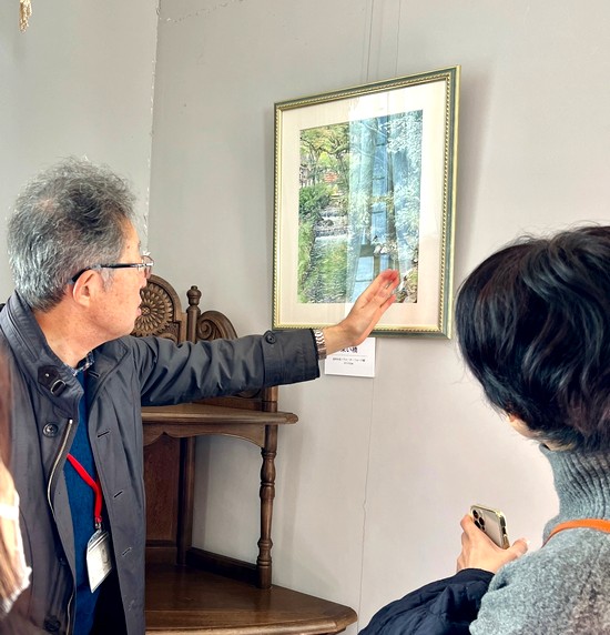 季節ごとに織りなす光と影の透明感のある素晴らしい透明水彩画作品に感動した、開催最終日であったので作者の遠藤和雄先生が来場していたので、お目にかかり作品の前で水彩画を描くときの光と影、濃淡など画法について短時間だったがお話が聴けたのが思い出に残った。私の質問にも相変わらず穏やかな口調で答えてくれて有難く、感謝した。