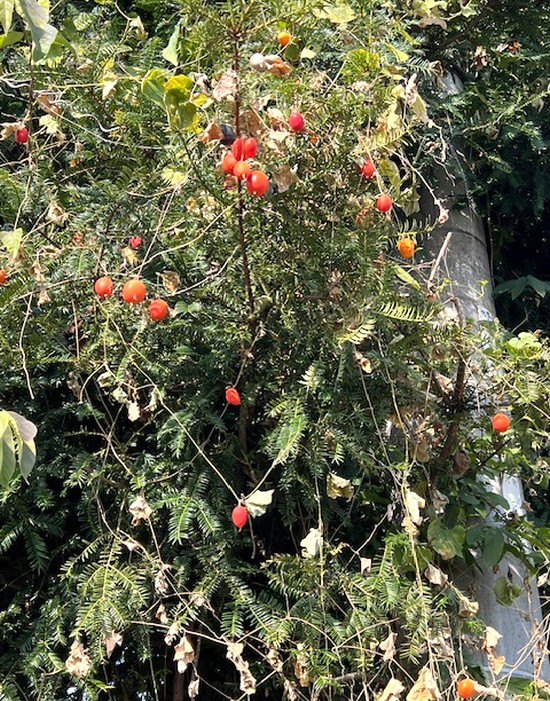庭のクレマチスの花が二度咲いている、道では銀杏が黄色く染まっている、カラスウリ、渋柿も秋の風情になっていた。この時期の那須岳の姥が平の紅葉はもう過ぎたかな、何度も登っているがもう山登りは諦めている。