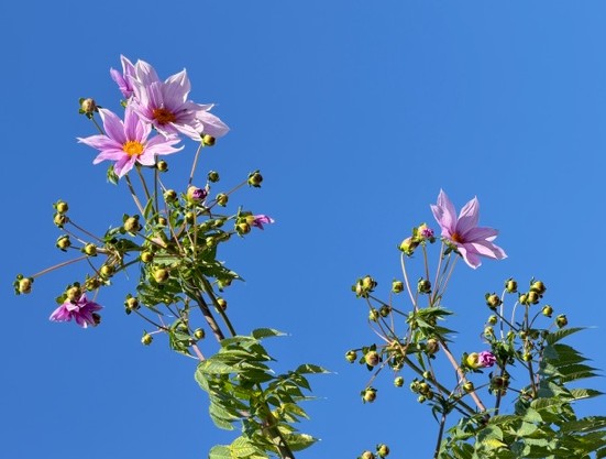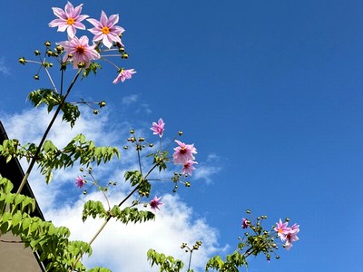 今年も我家の庭の「皇帝ダリア」が咲き出した。夏の猛暑と雨不足のため、どうなることか心配したが名前の通り気品にみちた大きな葉が咲いた。