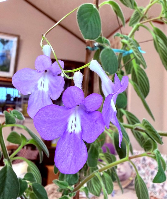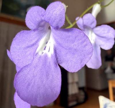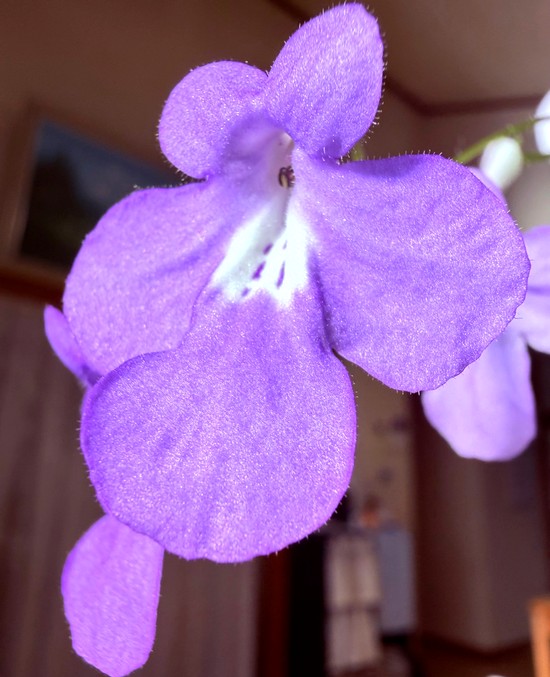 ストレプトカーパスの花 日記 2025.12.09 現在、我家の室内で咲いている花はストレプトカーパスのみである。暑さにも寒さにも弱いので基本的に屋内で栽培されるようだ。家内が好きな花で日ごろの手入れは絶やさない。花言葉には、「清純な愛」「期待に応える」「主張」だそうだ。 新しいiphone17ProMaxのカメラの48MPでマクロ撮影してみた。素人目には24MPの解像度と比較してあまり変わらないように感じた。 ストレプトカーパス
