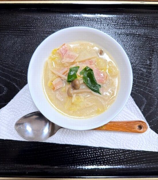 原因は牛乳を入れるタイミングが早すぎた、トロミを付ける小麦粉を使うのを忘れたためだった。完成したクリームスープは料理屋のものとは全く違っていたが・・・味は自分作品であるという思い込みの為もあり美味しく出来上がったと思う。