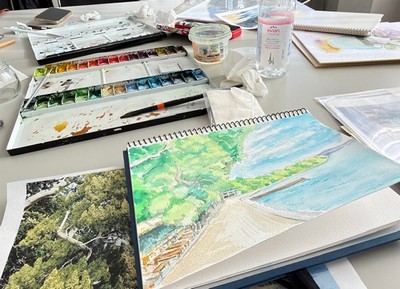 午後は水彩画の仲間との勉強会があり近くの公民館で作品を持ち寄って評価したり先輩に教わったり、おしゃべりしたりの交流が出来た。同じ趣味を持っている仲間との水彩画の交流は楽しく愉快な時間が流れて行く。