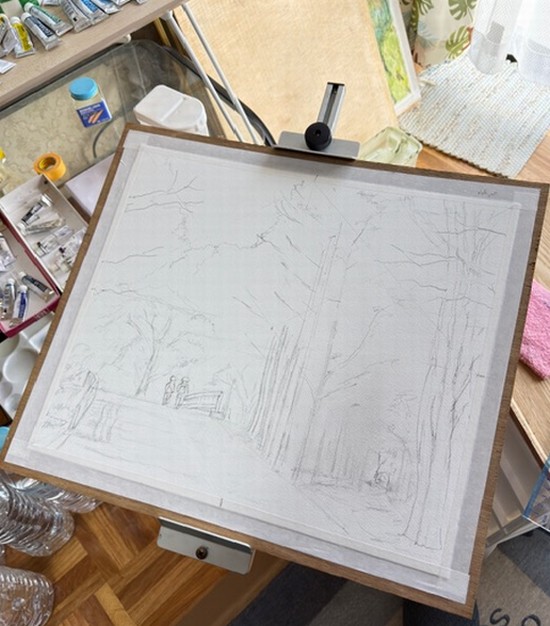 構図も考えて多少の修正を加えて描こう、思ったように描けたら展示会に出したい!絵の題名は「秋の散歩の記憶」と決めてあるのだが・・( ^^) _U~~。