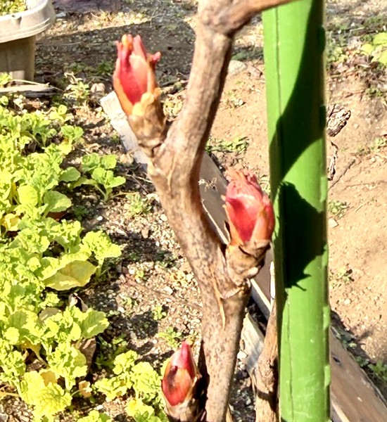 芽吹きの始まり 日記 2026.02.22 冬の名残をまだ枝にとどめながら、庭の木々はひそやかに目を覚まし始めました。ボタンの芽は紅を差した指先のようにほころび、ドウダンツツジは細い枝の先で、春の合図をそっと掲げている。シャクナゲの蕾は、陽だまりの中で静かにふくらみ、まだ見ぬ花の記憶を胸に抱いているかのようだ。 季節は音もなく進み一枝ごとに宿る小さな決意、春は遠くから来るのではなく、枝の内から始まるのだと教えてくれる。芽吹きとは、声なき宣言なのかもしれない。幾度も繰り返されるこの営みを、今年もこうして眺めていられることは幸せである。 ボタンの花芽 シャクナゲ ドウダンツツジ