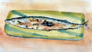水彩画 焼きサンマをスケッチ 趣味で透明水彩でスケッチ画をえがいている。今日は焼きサンマを描いた。焼くとサンマの表面色が微妙に変わったり、焦げ目など出来る。出来るだけリアリテーに描こうと頑張ったがこれが限界だな。背景はもっと濃くしてサンマを前に出した方が良かったのか?ど... 2025.10.05 水彩画