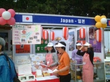 午後はちょうど毎年開催される韓国駐在外国人のお祭りがソウルの子供公園で開催しているというので見学することになり地下鉄駅を降りるとすぐ公園です、入り口付近に警官が目立ちます、やはりテロ事件による影響で外国人が集まるところで何かあると大変との政府の考えが厳重警戒になっているようです。