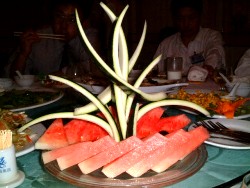 各国の民族紹介や観光紹介と模擬店が出ていました。日本は沖縄県が担当だそうです、模擬店のウドンが1000ウオンで人気でした。沖縄の太鼓を使った民族踊りもテンポもよく良かったですね、各国の民族の伝統的な衣装や踊りをみてアジアは一つだなと感じました。友人が正式な韓国定食を食べたいというので別の友人が予約した高級食堂に案内してくれことになった。